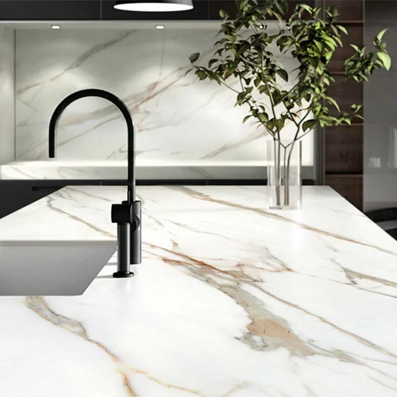 Grazie all’assenza di porosità, i piani ultracompatti in Dekton® sono molto resistenti e igienici e quindi adatti in cucina dove imitano alla perfezione pietra e marmo oltre che i piani in quarzo. Sono disponibili in varie colorazioni, finiture e misure, spesso accompagnati da alzatina e schienale nello stesso materiale per completare l’area operativa in modo funzionale e con lo stesso stile. I bordi sono rifiniti frontalmente e lateralmente tramite levigatura e lucidatura.