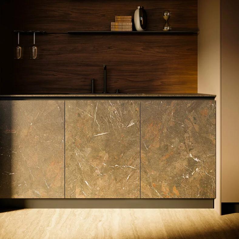 È UN MATERIALE LAVORATO A PARTIRE DA UNA MISCELA DI OLTRE VENTI MINERALI NATURALI CON L’AGGIUNTA DI VETRO, MATERIALI CERAMICI E QUARZO DI ALTISSIMA QUALITÀ. LE LASTRE COSÌ OTTENUTE MANTENGONO INALTERATE LE PROPRIE PRESTAZIONI, ANCHE IN CASO DI DIMENSIONI MOLTO AMPIE E DI SPESSORI MOLTO RIDOTTI.